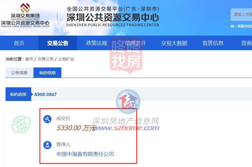 据了解,今年9月12日,樟坑径直升机场项目用地也成功出让,由“中国中海直有限责任公司”以底价5330万元竞得。