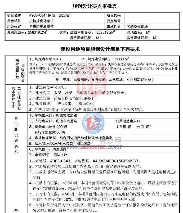 该区域交通用地(宗地号A908-0847),土地面积约25.8万平,土地使用年限为50年。