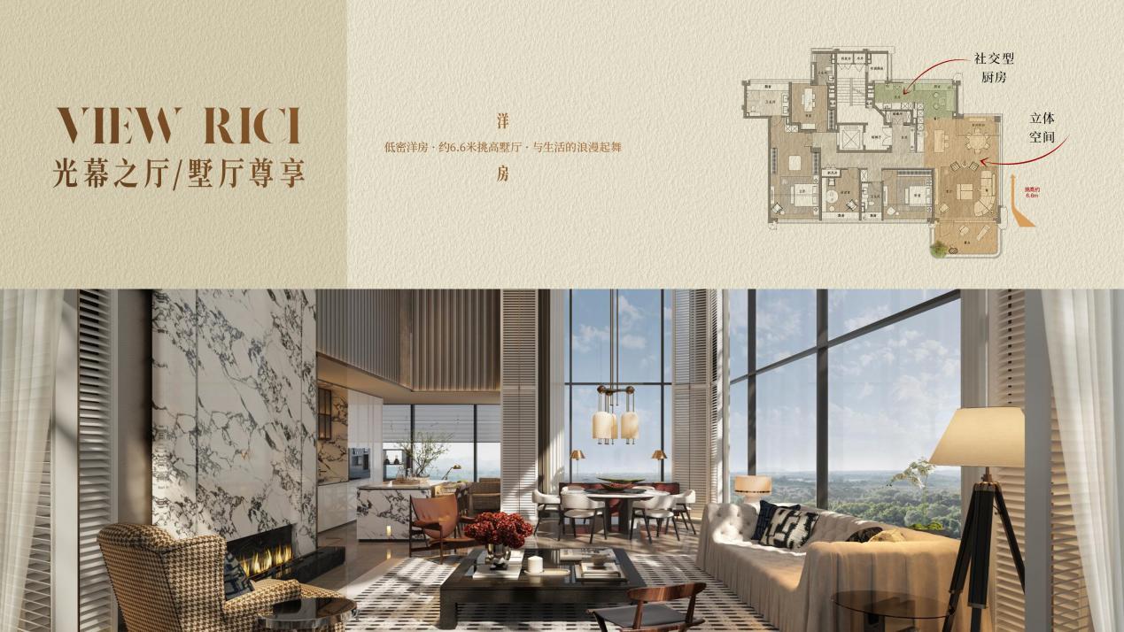 建面约220-250㎡洋房,以约6.6米挑高客厅实现“墅级体验”;