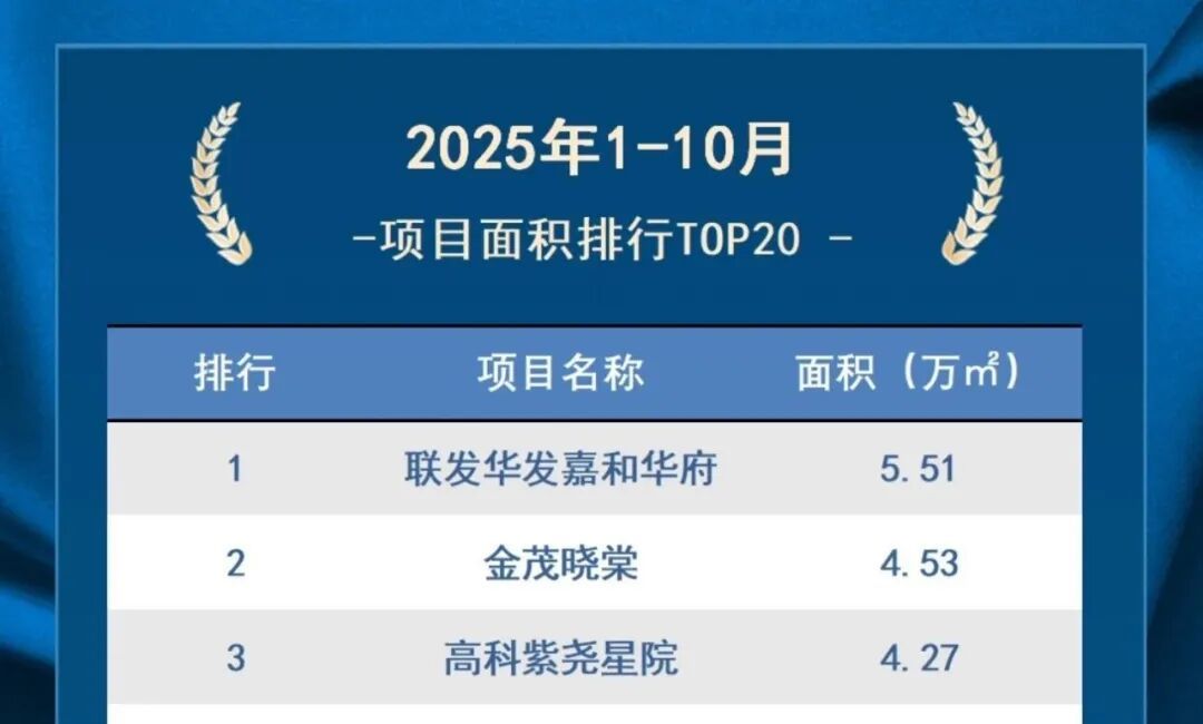 在2025年1-10月南京项目面积排行榜中,高科·紫尧星院累计销售面积4.2万㎡,位列全市TOP3,当之无愧的南京销售红盘。