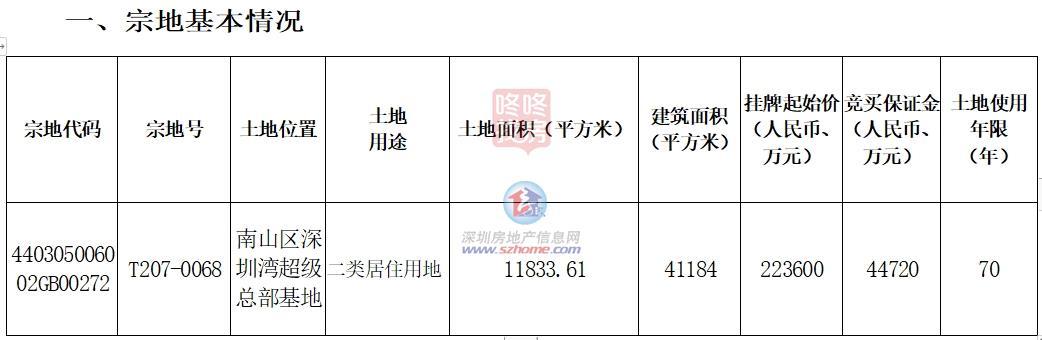 11月8日,位于深湾超总的T207-0068宗地挂牌,将于12月8日15:00竞拍。