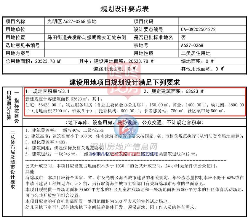 光明区地块编号A627-0268,建筑面积约6.36万平方米,邻近地铁6号线红花山站,挂牌起始价约7.66亿元。