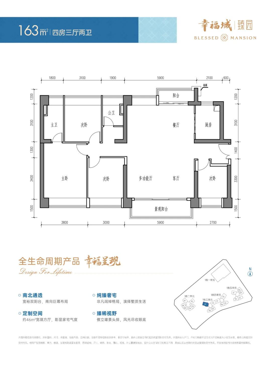 项目主打建面约96-163㎡三至四房臻品户型,满足不同家庭结构需求。