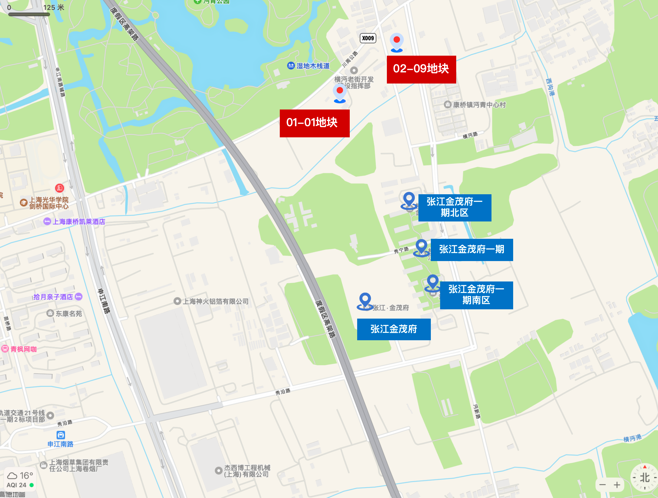 同年,金茂联合体以总价约29.94亿元摘得片区内首批地块(即现项目“横沔玖境瑞府”);2023年12月,再次以约28.13亿元摘得08-02地块(即“张江金茂府”)。