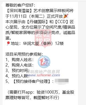 此次样板间位于春笋大厦12层,设有209㎡与294㎡两种户型。参观需验资1000万元(股票、余额、基金、理财等均可,需现场出示相关APP凭证)。