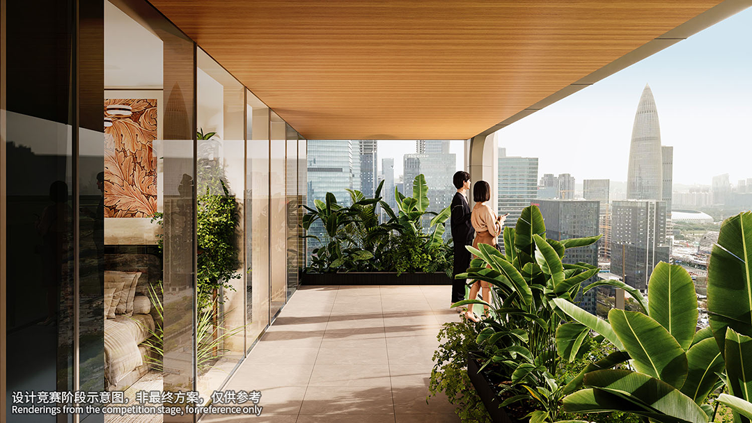 根据KPF建筑设计事务所(Kohn Pedersen Fox Associates P.C.)释放的中标方案,项目将按第四代住宅标准设计,五栋住宅楼采用全玻璃幕墙设计,大部分户型都有大阳台,70%户型可270°无遮挡俯瞰深圳湾海景。