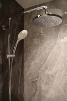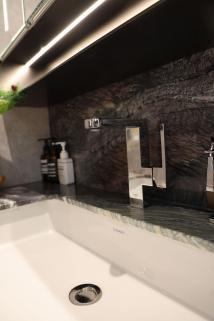 室内空间的“ 精工细节” 更藏着打动人心的温度 :杜拉维特龙头历经 28 道工序打磨 ,确保数十年使用 依然光亮如新 ;汉斯格雅花洒的 AirPower 技术, 让水流如雨露般柔和 ;厨房区域的博世电器精准回应 烹饪的安心需求 。更有融入生活场景思考的“ 人性化设计”, 门边框的防撞静音条 、奢石岛台的移动插 座与边柜收纳、华为中控面板的触感反馈,见微知著,这些“ 看不见” 的细节 ,正是品质生活的最佳诠