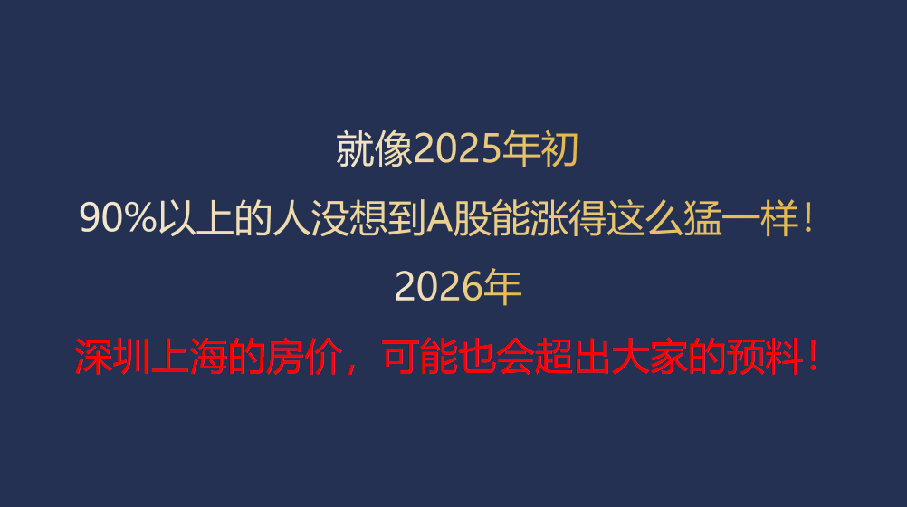 2025年初,有九成以上的人,没想到A股会涨得这么猛!2026年,深圳和上海的房价,可能同样会超出大家的预料!
