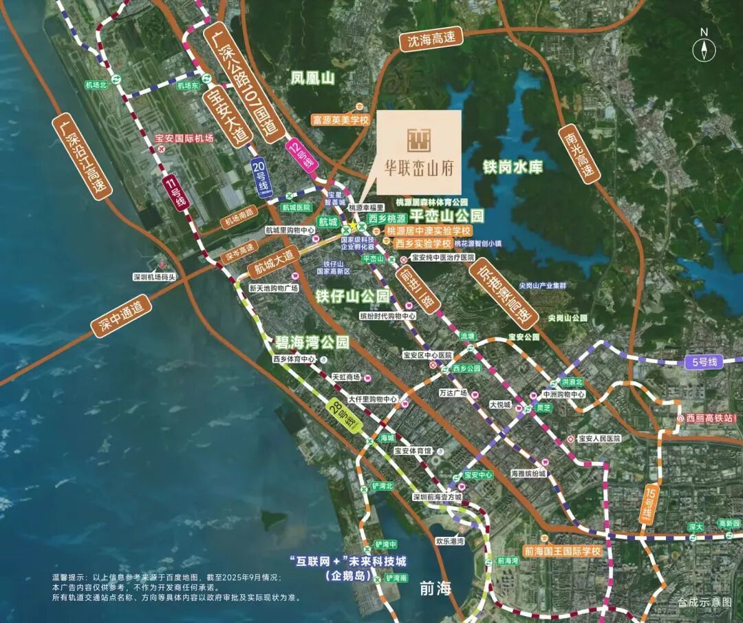 华联峦山府位于地铁12号线西乡桃源站C出口,旁边20号线航城站在建,还有地铁28号线(规划中)。