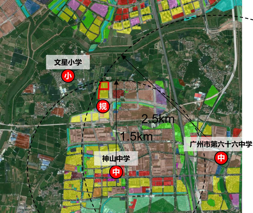 资料显示,白云区江高镇AB0101011地块西侧黄金围大道已建成,距离广佛西环神山站约500米。教育配套层面,地块周边现有1所小学,文星小学;2处中学,广州市白云区神山中学、广州市第六十六中学;另规划1处24班小学。
