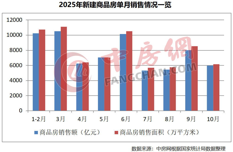 根据国家统计局数据,1-10月份,新建商品房销售面积71982万平方米,同比下降6.8%,降幅比去年同期收窄9个百分点;新建商品房销售额69017亿元,下降9.6%,降幅比去年同期收窄11.3个百分点,与去年全年相比也有所改善。