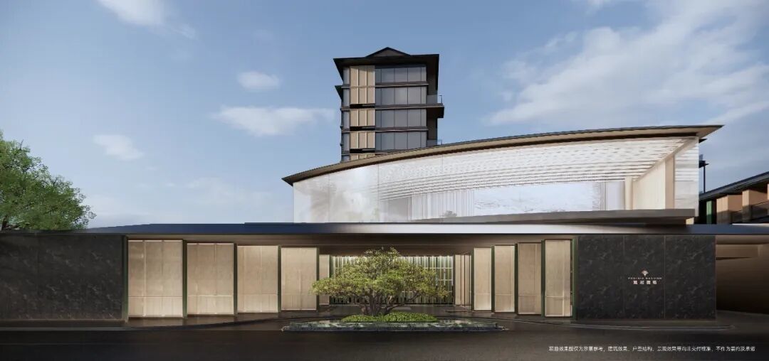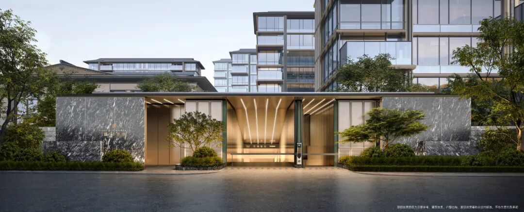 凤起潮鸣主入口以丹青玉屏为灵感,打造半开放的社区前场。