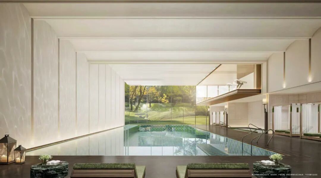 凤起潮鸣还打造了河西唯一挑高约7.8米的恒温泳池,双270°转角玻璃打破室内外的边界,并巧妙融入了亲子泡池、亲子更衣室与干蒸房等,上部空间悬浮着全景舱健身房,让公区享受成为家的日常延伸,交织美好的运动时光。