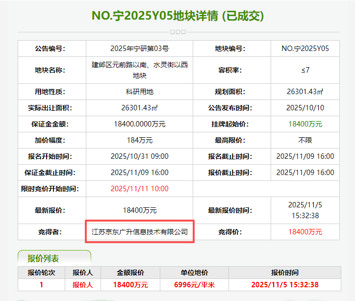 拿地房企:江苏京东广升信息技术有限公司
