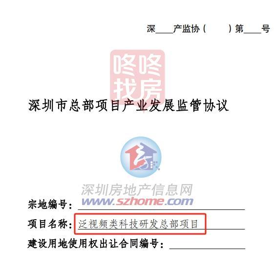 根据深圳市总部项目产业发展监管协议显示,该地块将建设泛视频类科技研发总部项目。