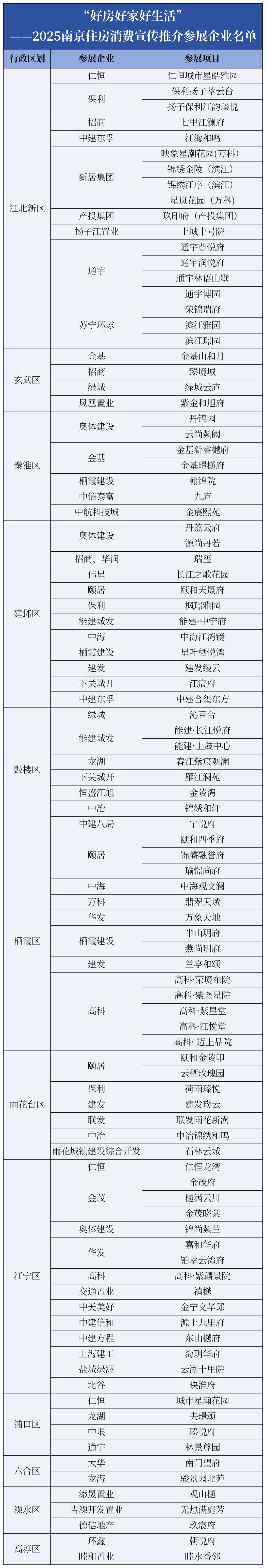 本次住房消费宣传推介活动以“好房子”为核心,用可触摸的工艺、可体验的场景、可量化的标准,全方位呈现南京好房子的品质实力,现场还将展出未来的南京规划,为市民打造一场“看得见、摸得着、选得放心”的宜居盛宴。全市12个区汇集47家标杆房企、96个精品项目,房源类型丰富,全面满足不同人群的住房消费需求。
