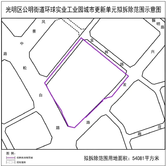 宏发环球实业城市更新项目位于光明区公明街道,拟拆除范围用地面积达54081平方米,更新方向定位为居住和商业功能,旨在打造一个集生活与消费于一体的综合社区。