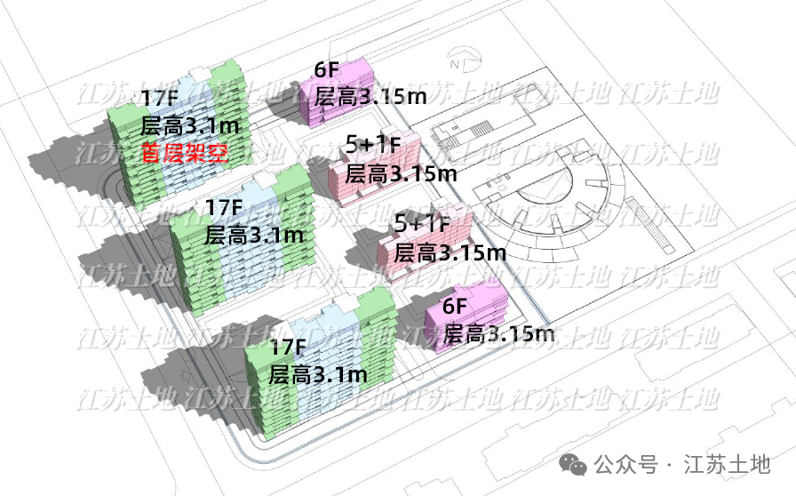 从地块强排方案示意来看,汇秀路以南、神机营路以东地块拟建设2栋6F多层洋房、2栋5 1低密叠拼、3栋17F高层,产品有着十分显著的差异化特色。其中,低密住宅全部沿东侧规划公共配套用地排布,视野更为开阔通透。