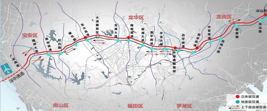 机荷高速连接宝安区与龙岗区,为国家高速公路网沈阳—海口高速组成部分。