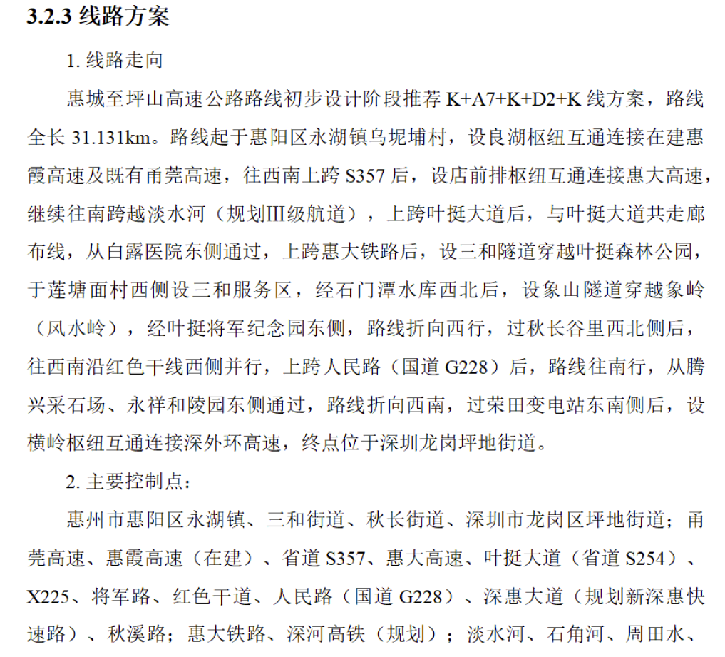近日,龙岗发布了惠城至坪山高速公路建设项目(深圳段)规划设计条件的公告。