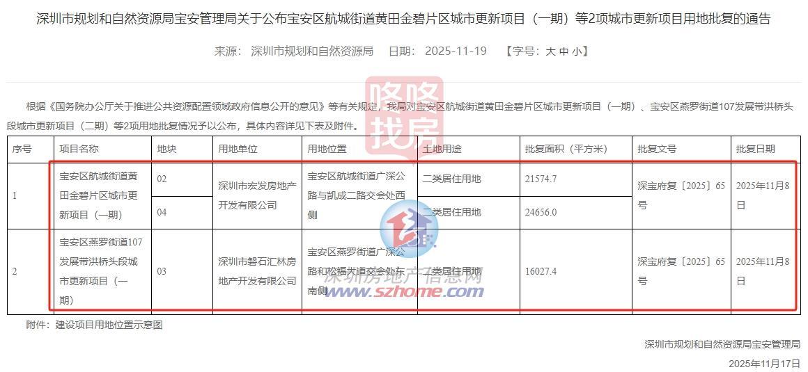 宝安3宗城市更新“住宅”用地批复!涉航城宏发项目