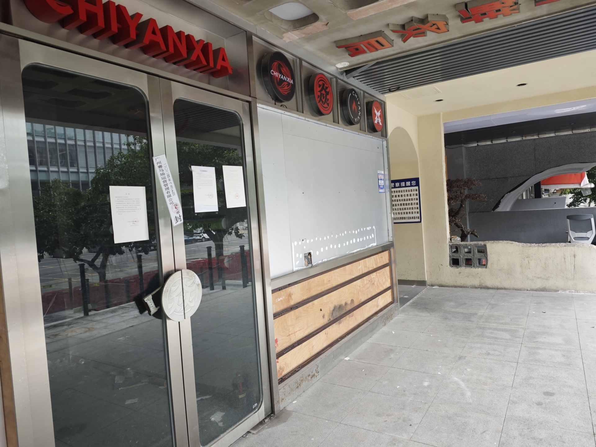 11月19日上午,《每日经济新闻》记者在广州天河区“马场地块”了解到,之前该地块的主要业态包括家居、餐饮、汽车、娱乐等商业项目,目前“马会家居”以及“马场地块”的商业店铺均已搬空,不少商业店铺已张贴停业及搬迁的公告。