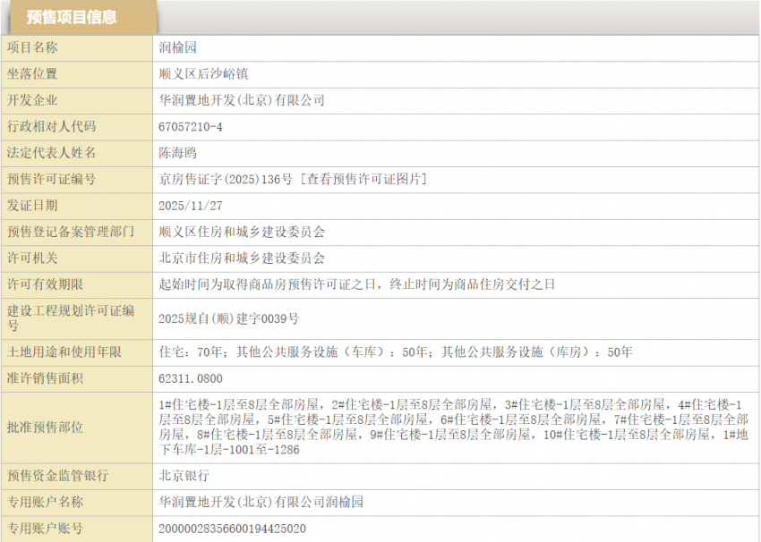 北京润园(备案名:润榆园)继11月5日442套房源获证之后,本周再次获证。本次批准预售部位涉及10栋住宅楼(1-10#),准许销售面积57171.53平方米,共计244套房源,预售住宅拟售均价在6.6万元/㎡-8.2万元/㎡之间。该项目是华润在北京的首个“园系”作品,共规划111栋楼,其中92栋双拼别墅、19栋洋房。