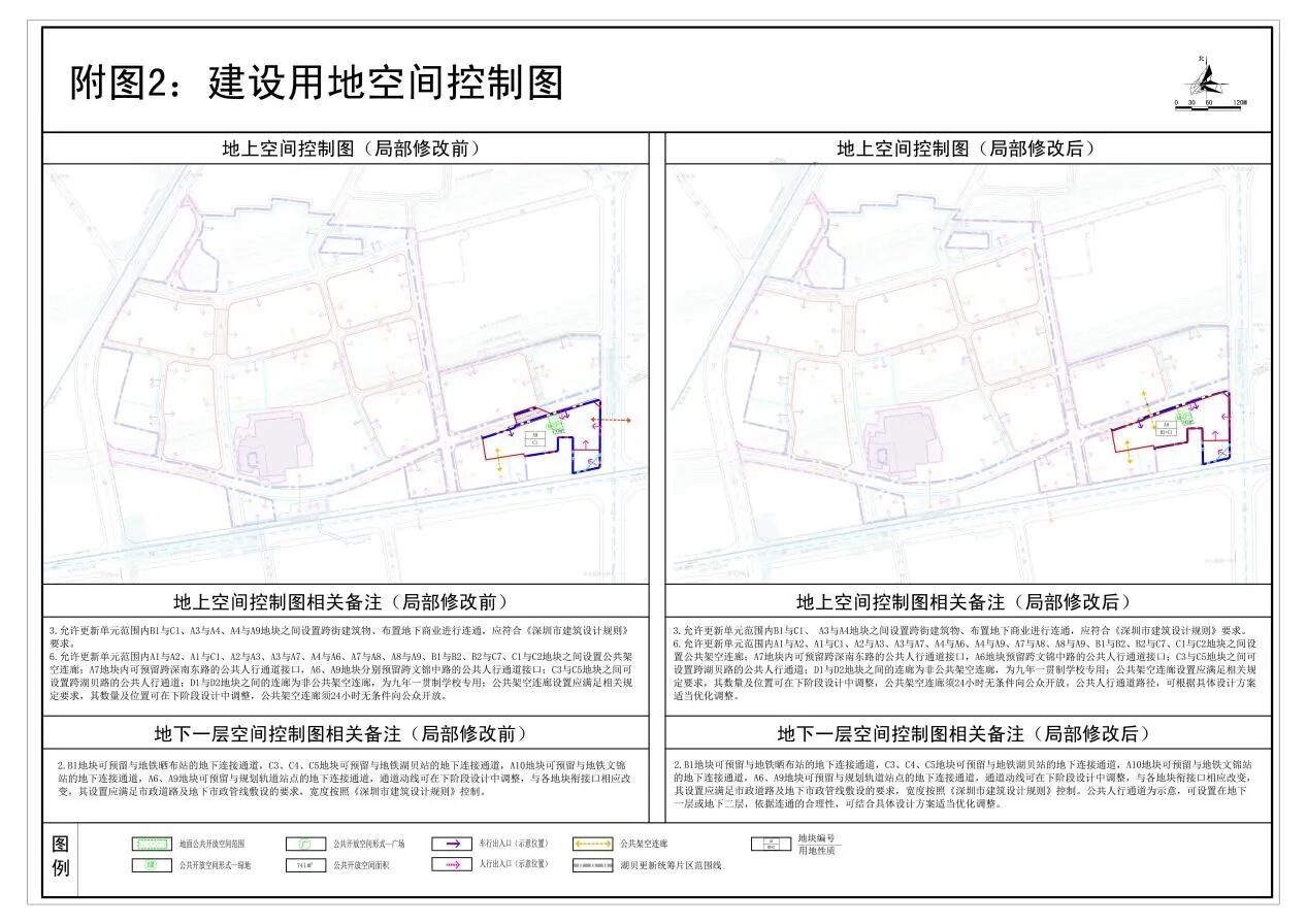 3.地下空间控制图备注增加“公共人行通道为示意,可设置在地下一层或地下二层,依据联通的合理性,可结合具体设计方案适当优化调整。”