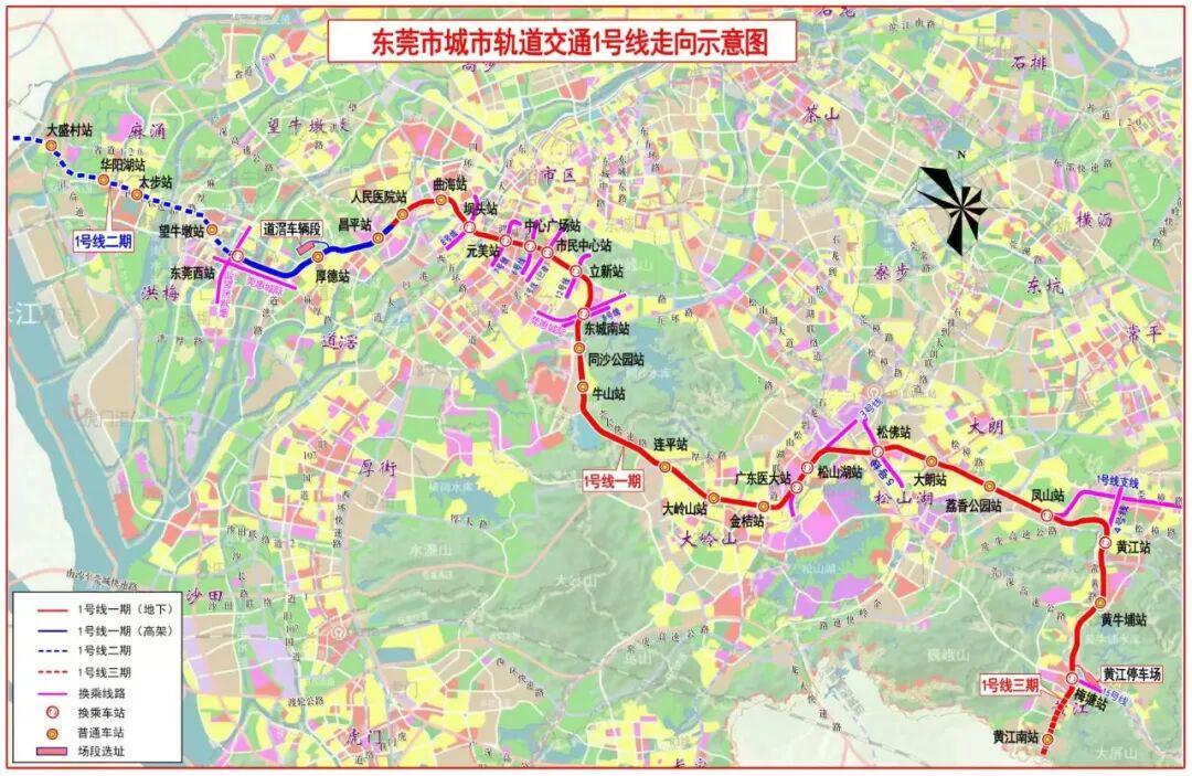 作为东莞轨道交通网络的重要组成部分,东莞地铁1号线计划分三期建设。本次开通运营的项目一期呈西北至东南走向,线路总长57.46公里,共设车站25座、车辆段和停车场各1座。