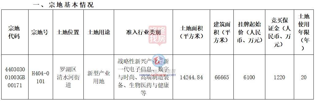 近日,深圳市红岗新动能产业发展有限公司以底价6100万拿下罗湖清水河新型产业用地(宗地号:H404-0101)。