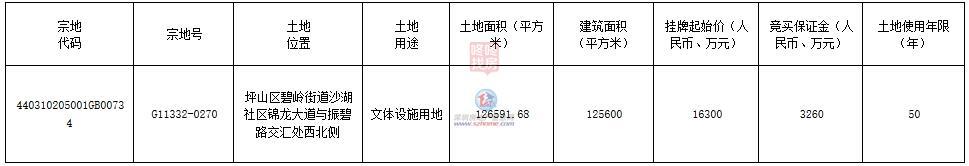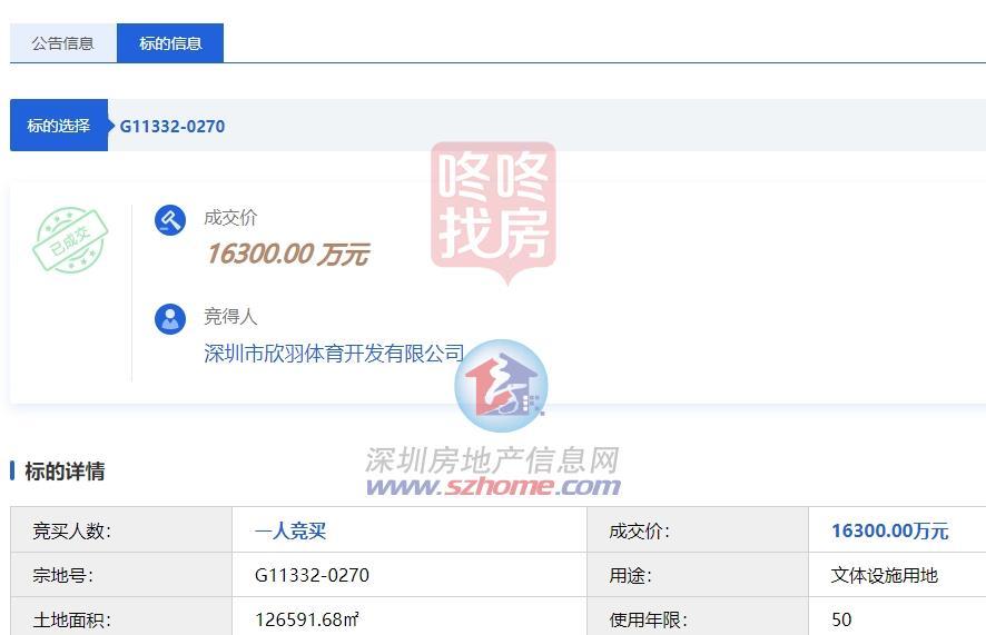 该项目地块于今年3月2日,深圳市欣羽体育开发有限公司以底价16300万元拿下文体设施用地。