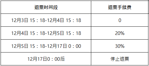 12月17日0:00后 停止办理退票,不再受理退票申请