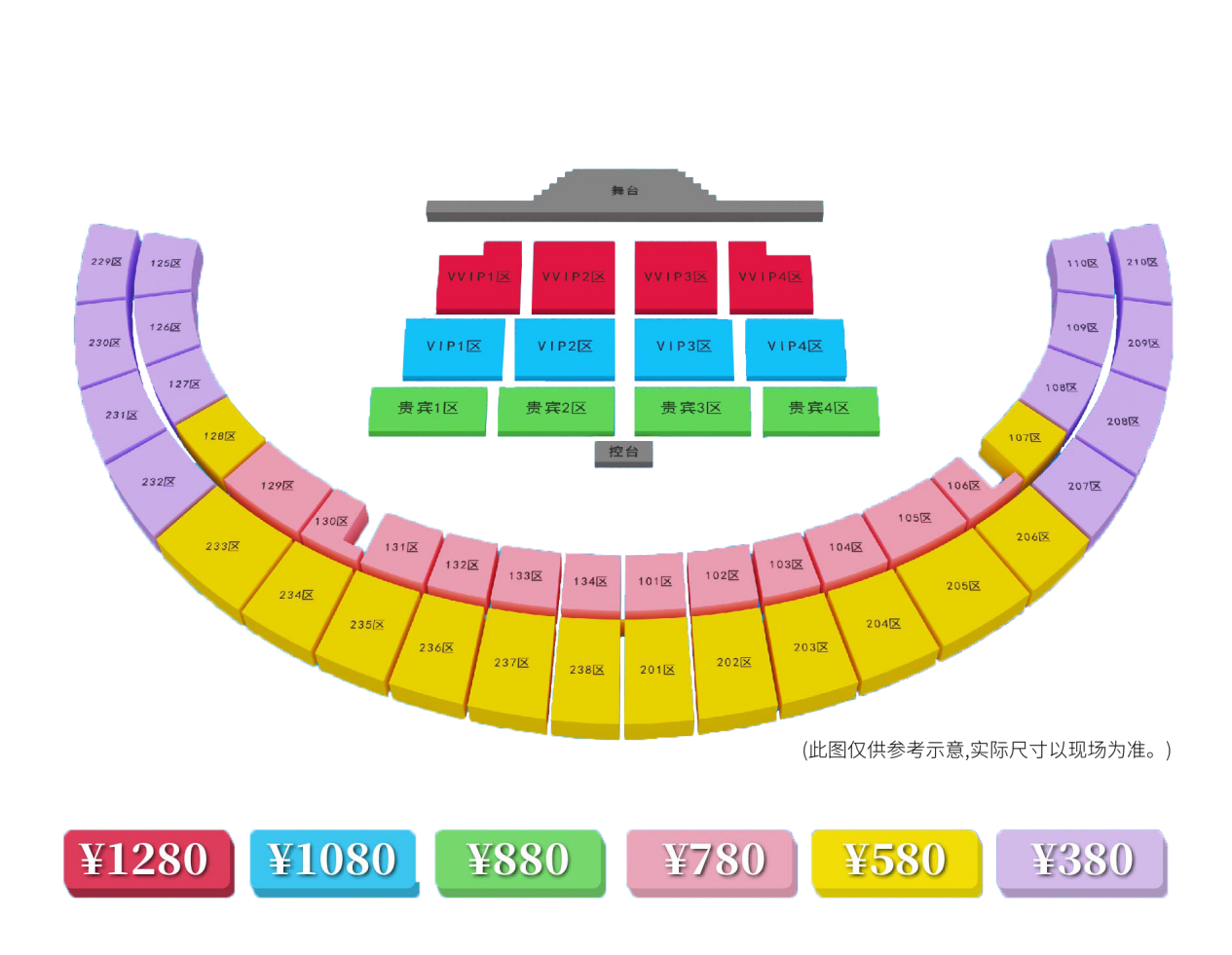 内场:VVIP/1280 VIP/1080 贵宾/880