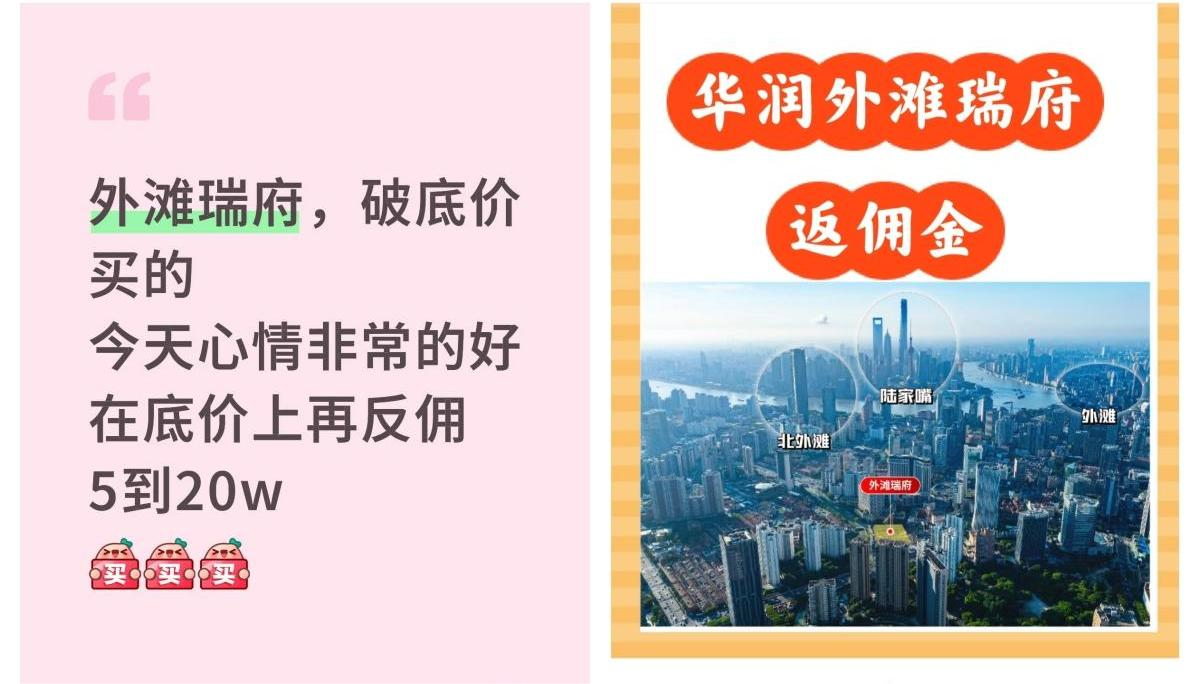11月有市场消息传出,虹口的华润外滩瑞府悄悄开通渠道合作,搞了阶梯式折扣:成交4套以内给0.9个点优惠,4-10套涨到1.3个点,突破10套直接拉满到1.8个点。按这个规则算,一套总价3000万的房源,最高能省下54万元。