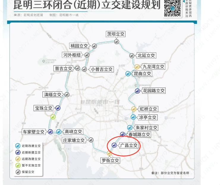 交通是区域发展的“动脉”,会展板块的交通红利正加速兑现。广昌立交桥建设进度已超65%,预计2026年上半年完工,建成后将彻底打通南绕城高速与城区的交通壁垒,大幅缓解昌宏路、广福路的通行压力。从项目出发,经广福路、东三环可快速直达巫家坝、滇池会展中心,通往长水机场也一路顺畅。