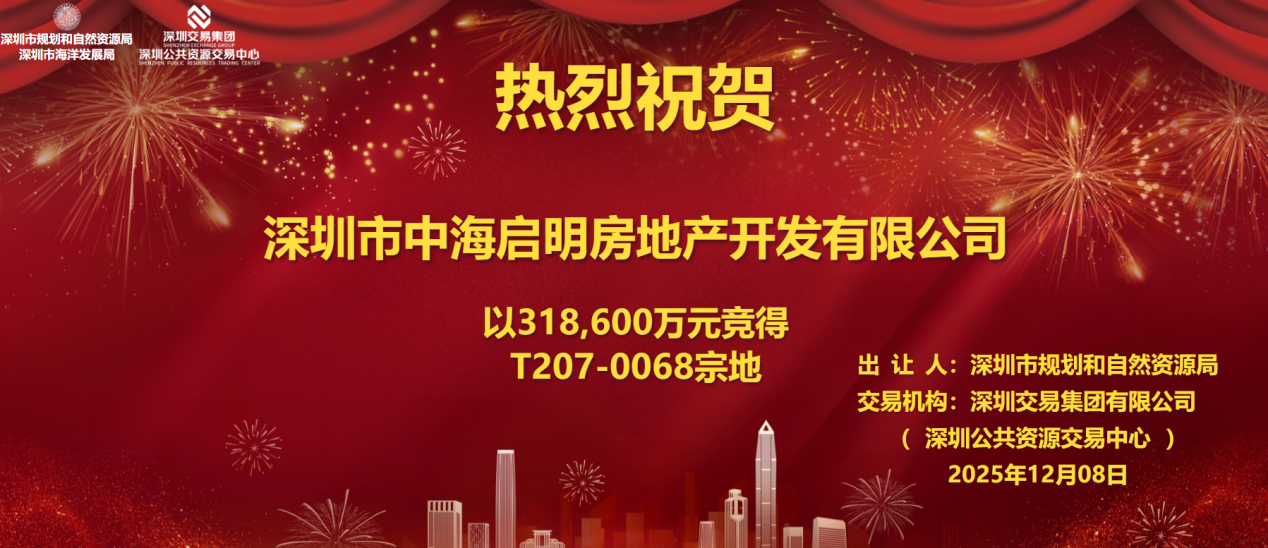 最终,历经95轮激烈举牌,深湾超总T207-0068地块由深圳市中海启明房地产开发有限公司以31.89亿元竞得。