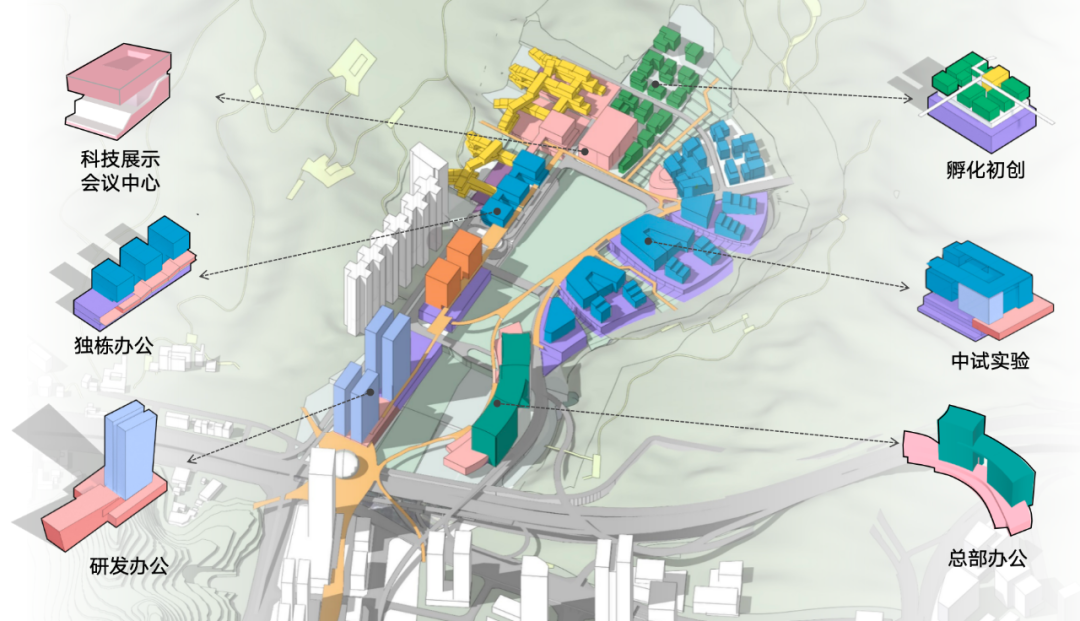 片区规划强调“三生融合”,不仅为企业提供覆盖初创到总部全周期的高适配产业空间,还同步构建高品质生活配套与生态休闲系统,形成“生产、生活、生态”有机融合的新型总部园区,呈现 “城野相融、山城共生” 的独特空间格局。