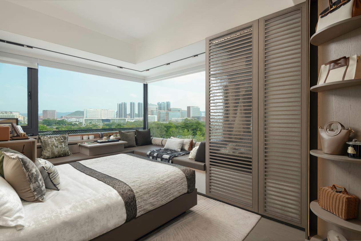 据现场工作人员介绍,整个展示区设计灵感源自深圳湾安达仕酒店,整体按照五进制礼序进行归家动线设计,从“一进门→二进庭→三进廊→四进院→五进厅”五重空间递进,营造出超越常规的酒店式归家体验。