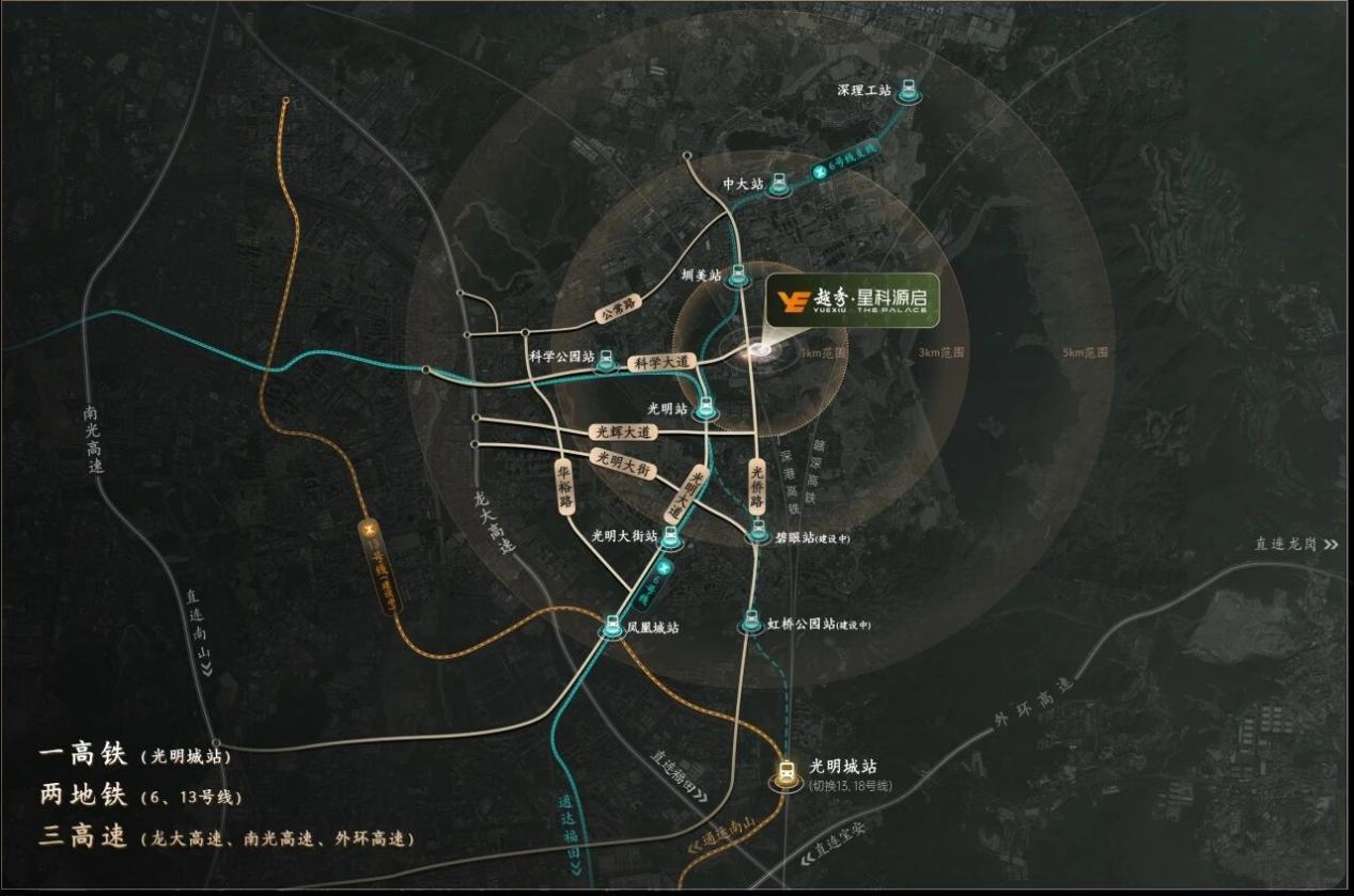作为光明科学城"一心两区"规划中的"一心",光明中心区不仅是科学城内最适合居住的区域,更是高端创新要素的集聚地。越秀·星科源启恰位于此核心板块,以“配套先行”的实景力,诠释中心区生活的顶配体验。