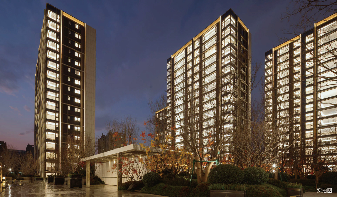 中环悦府的外立面,便是对中轴气度的一次现代转译。