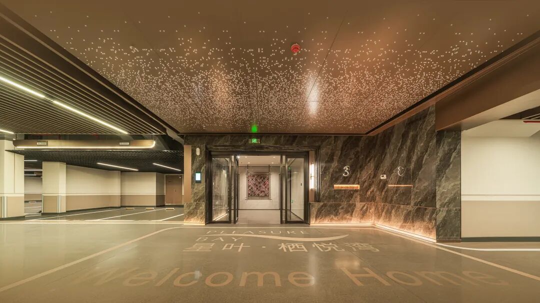 同时,地下车库做了全面升级,入口星空顶、地库大面积吊顶,让业主的归家之路更具仪式感。