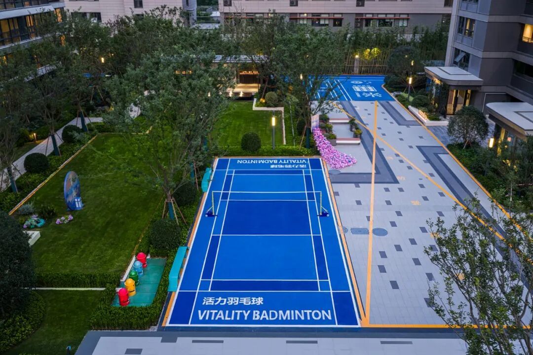 小区还打造多处休闲设施,羽毛球场将之前的沥青地面翻新成塑胶地面,保证业主体验感。