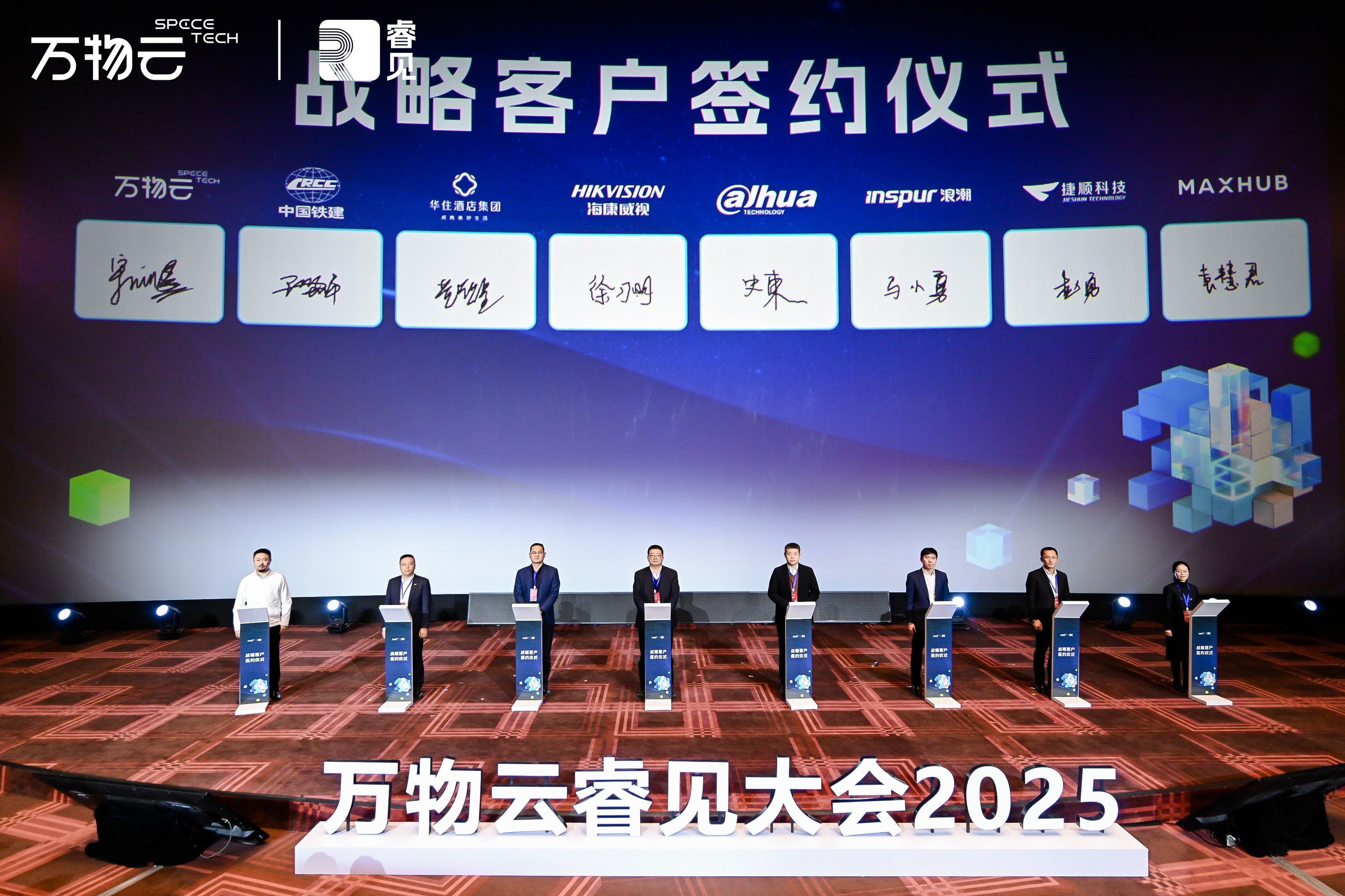 会上,万物云还与中国铁建、华住酒店集团、海康威视、大华股份、浪潮信息、捷顺科技、视源MAXHUB等21家企业完成战略客户签约仪式,将共同推动灵石在更多空间场景的落地应用,实现合作共赢。