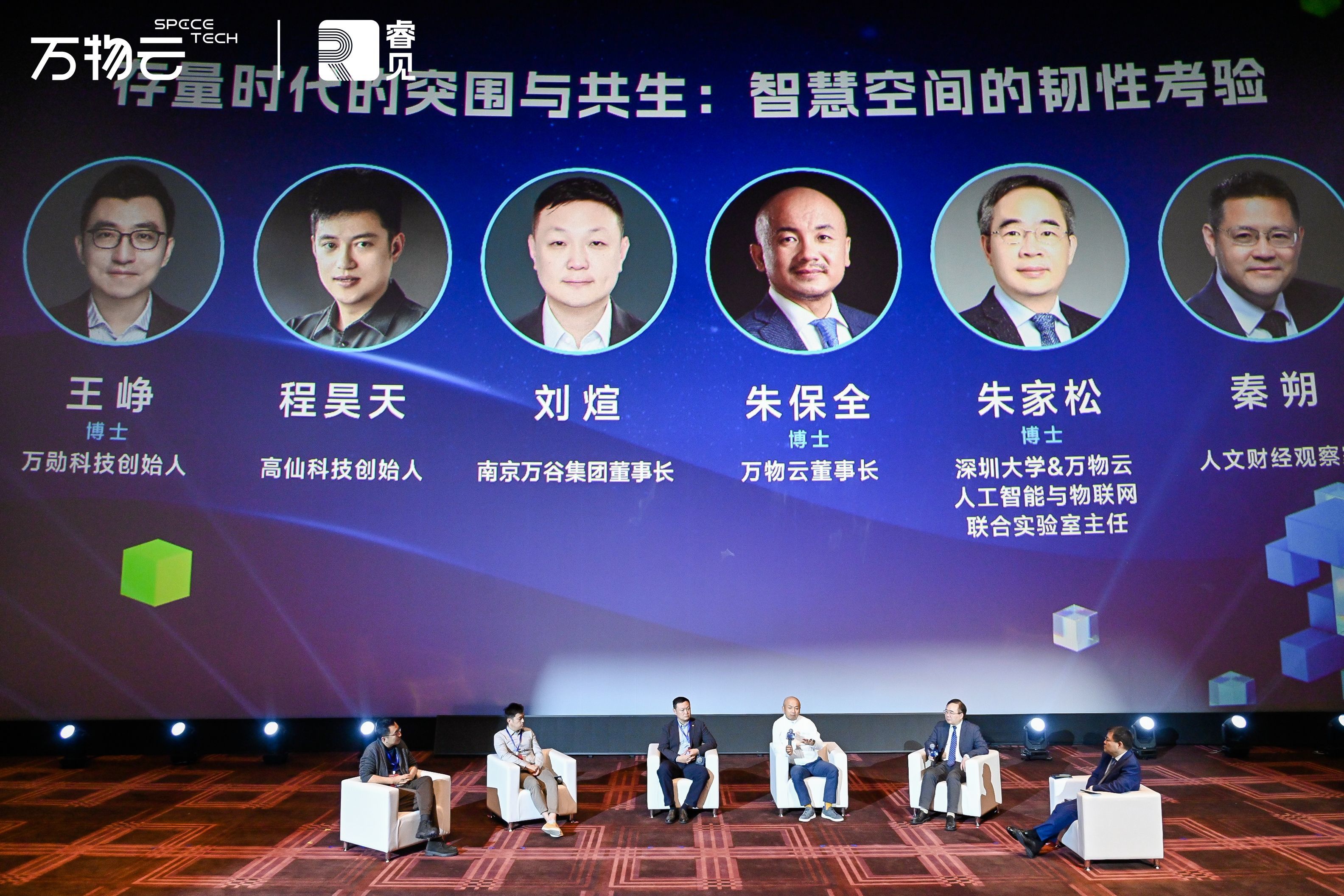 在圆桌对话环节,围绕“存量时代的突围与共生:智慧空间的‘韧性’考验”这一主题,第一财经日报创始人秦朔作为引导人,与万物云董事长朱保全、南京万谷集团董事长刘煊、深圳大学&万物云人工智能和物联网联合实验室主任朱家松、万勋科技创始人王峥、高仙科技创始人程昊天展开了深度探讨。