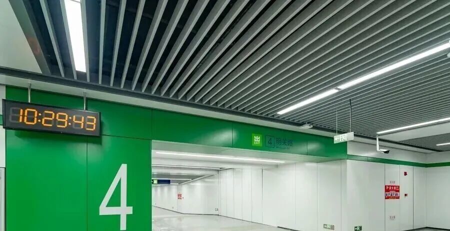 作为既有线路的延伸,三期工程在车站装饰上延续了经典的绿色主题。走进站厅、站台,亮眼的绿色线条贯穿各个区域,既呼应了既有线路的独特标识,又让整个车站充满清新活力,成为线路鲜明独特的视觉标识。