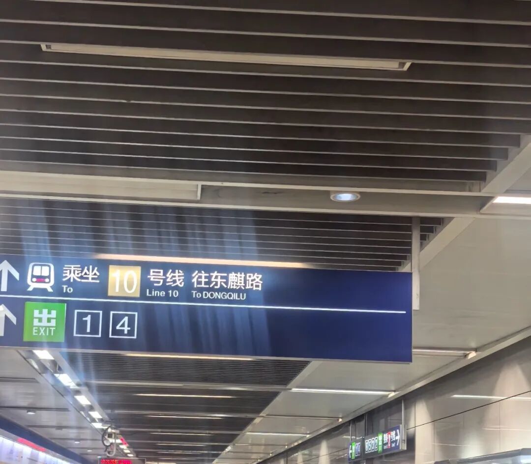 换乘指示牌也已更新:乘坐10号线往东麒路站!