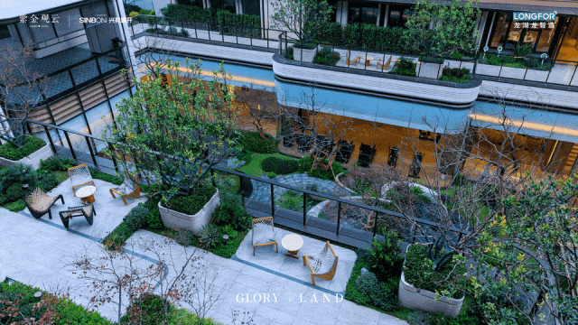 向上生长的立体森境体系,通过“S”型的游园小径去引导视线,“拉长”视觉上的空间效果,大量名贵树种环绕,造四时不同风景,空间巧妙划分,被自然感包裹的生活聚场,能让人久久驻足。