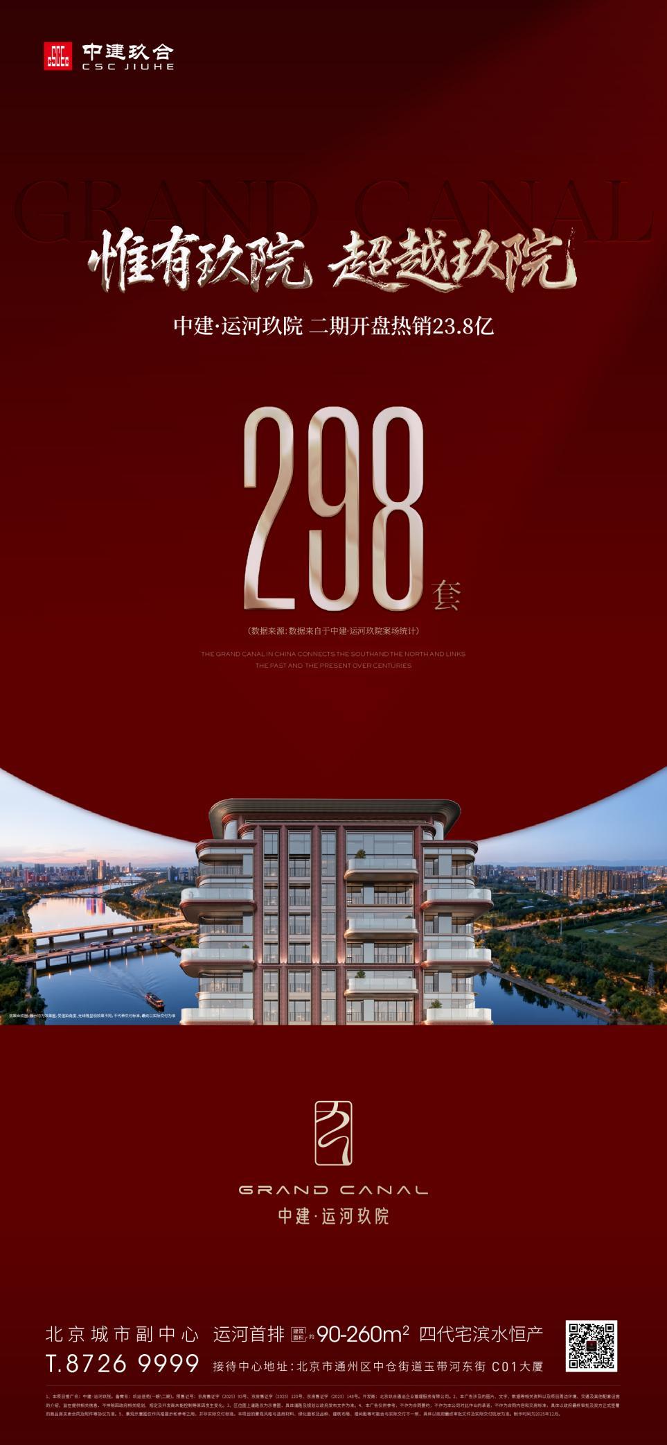 当市场还在热议一期的热销神话,中建·运河玖院已用二期的高光开盘,再次刷新北京高端住宅市场的热度天花板,开盘当日即达成298套的卓越战绩!同一场传奇,在更高维度上迎来续写与升温!