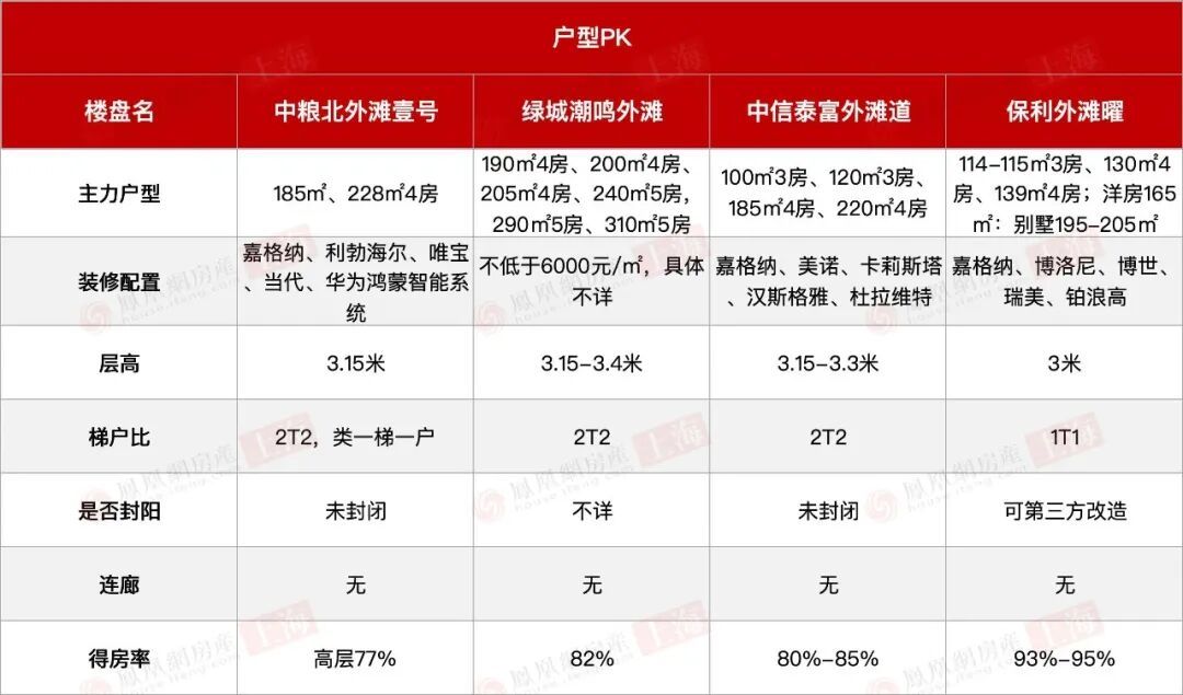 绿城潮鸣外滩:清一色190-310㎡大平层,从4房到5房都有,尤其是240㎡、290㎡、310㎡5房,在四个项目里没有直接竞品,主打顶级尺度;