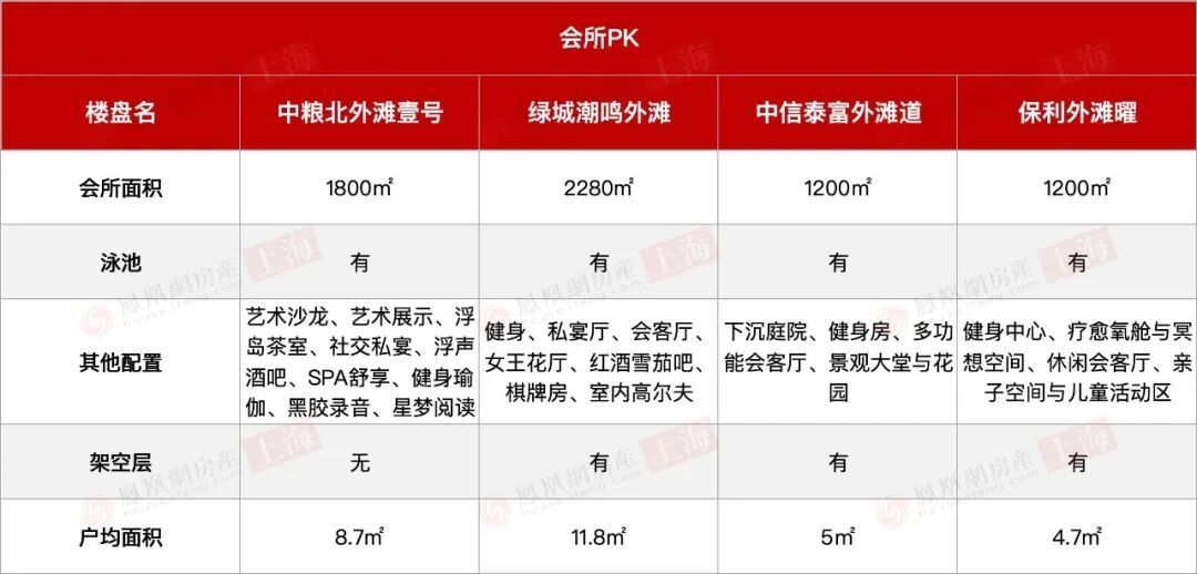 会所是豪宅的“第二客厅”,也是圈层生活的实体场域。四个项目都配有会所,但面积、功能、户均占比差距很大: